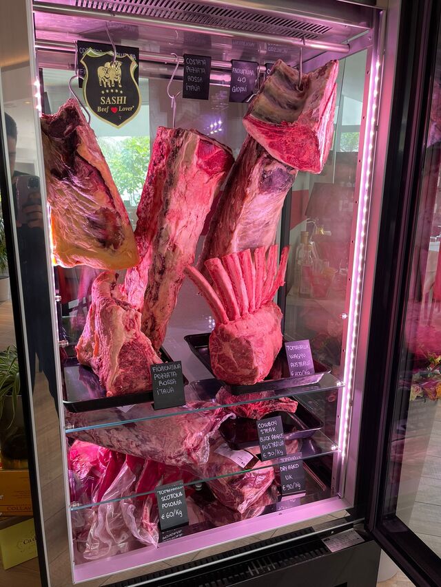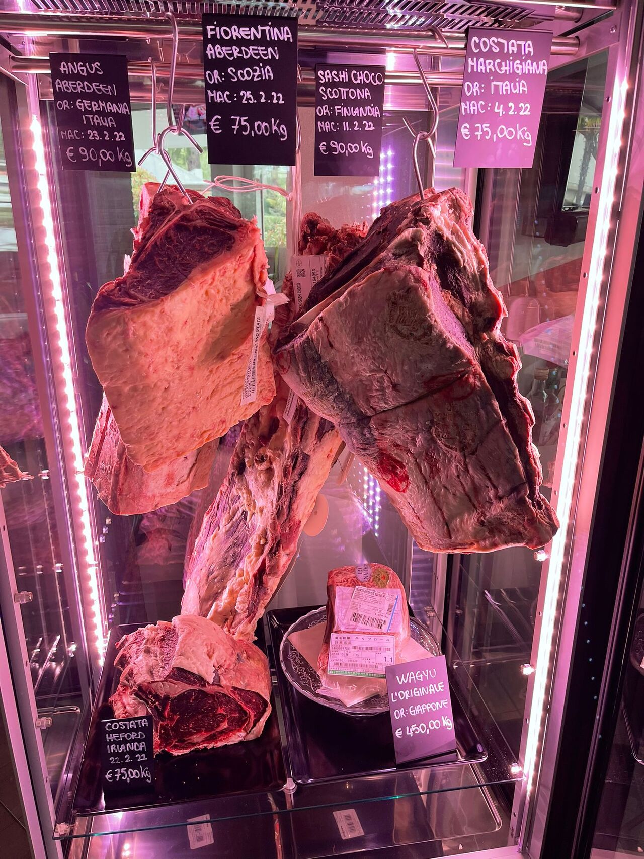 Il nostro locale, dotato di celle frigorifere a temperatura controllata, offre carni selezionate e pregiate, esposte direttamente in sala per essere selezionate dai nostri clienti. Alcuni esempi? Tomahawk Irlanda, Fiorentina e la Kobe giapponese...